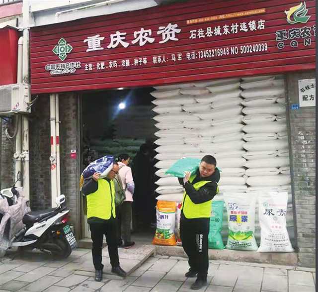 ¡¡¡¡ÔÚʯÖùÏØÏ·Õò£¬ÖØÇìÅ©×ÊÁ¬ËøµêΪÏ·Õòó{ƽ´åËï¼ÒÁúµÈÅ©»§ÅäËÍÄòËØ¡¢¸´ºÏ·ÊµÈ·ÊÁÏ5¶Ö£¬ËùÓнø´åÈë»§Ë͵½Å©»§ÊÖÖУ»